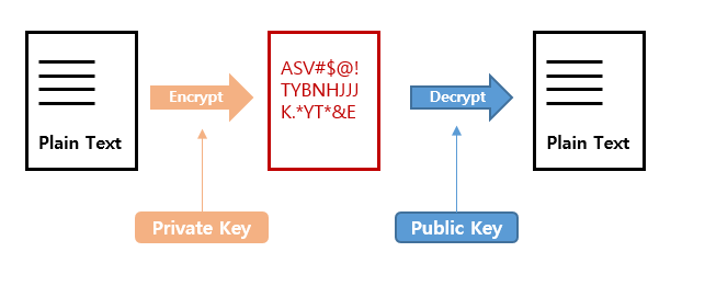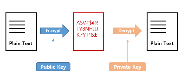 암호화와 복호화 시 서로 다른 키를 사용한다.