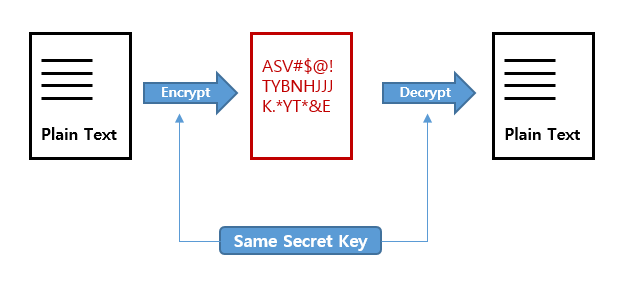 암호화와 복호화 시 같은 키를 사용하며, 계산속도가 빠르다.